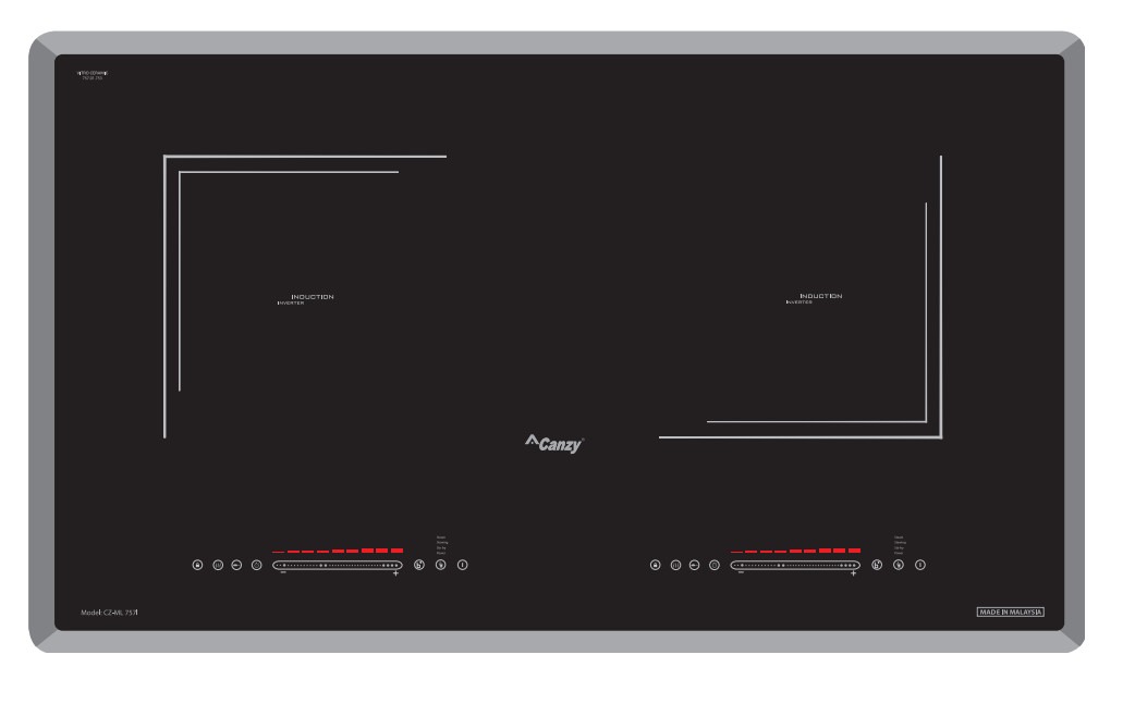 Bếp từ CANZY gồm 2 vùng nấu từ độc lập, giúp người dùng dễ dàng chế biến nhiều món ăn cùng lúc – tiết kiệm thời gian, nâng cao hiệu quả nấu nướng.