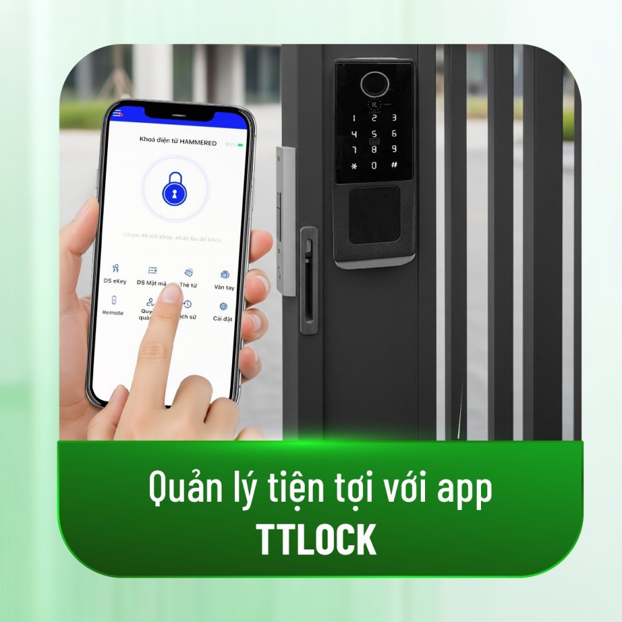 Nhờ tích hợp App TTLock, người dùng có thể kiểm soát toàn bộ hoạt động của khóa ngay trên điện thoại. Việc kết nối Bluetooth nhanh chóng giúp tạo, chỉnh sửa hoặc xóa người dùng dễ dàng mà không cần thao tác trực tiếp trên khóa.