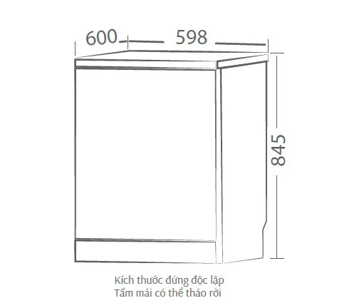 Kích thước sản phẩm đứng độc lập (CaoxSâuxRộng) | 845x600x598mm |