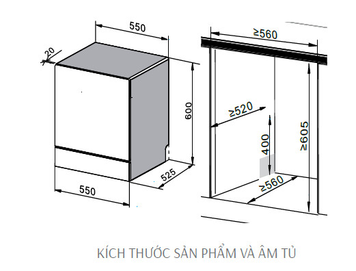 | Kích thước khoét lỗ | 560*550*610 (Cao x Ngang x Sâu) |